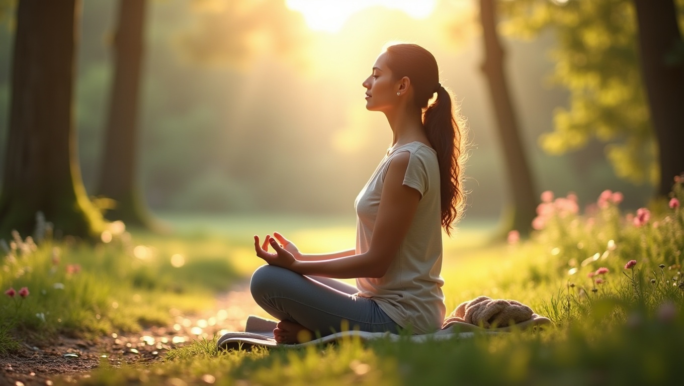 눈을 감고 천천히 호흡하며 들숨과 날숨의 흐름에 집중하세요.