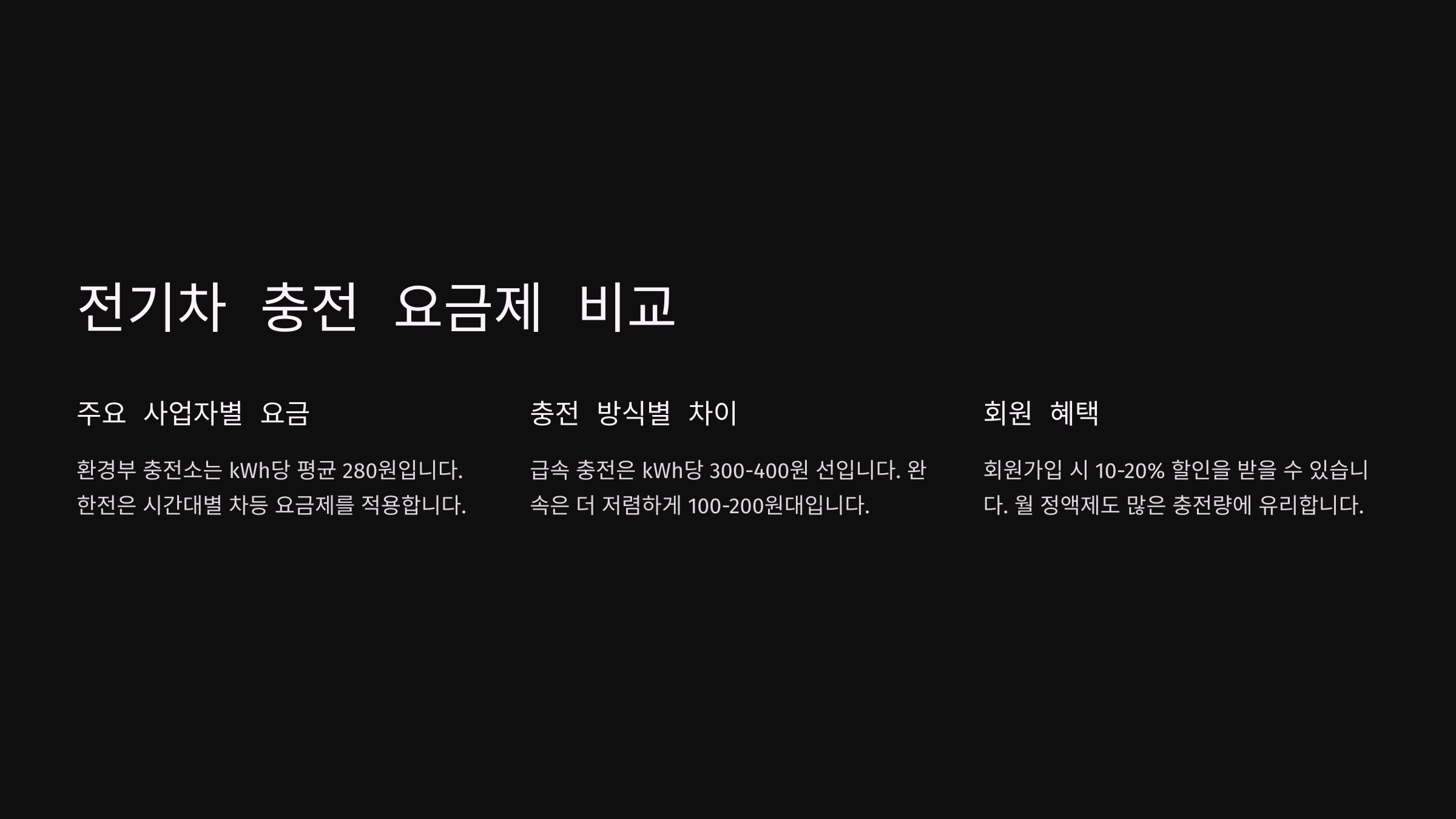 이어서 전기차 충전 요금제 비교부터 살펴볼게요! ⏬